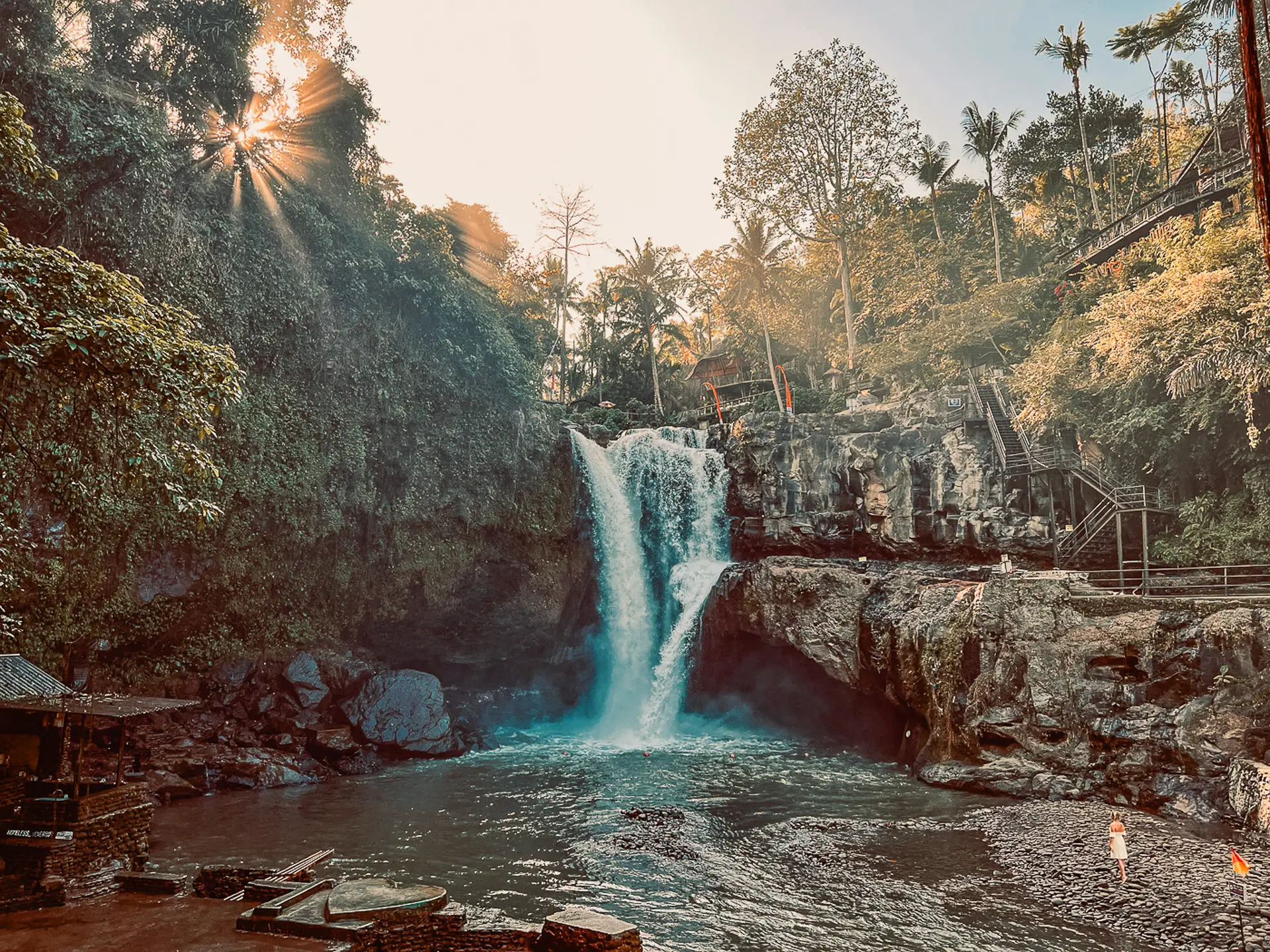 The road is lined with coconut trees, and the walk in feels calm. It’s an easy trail, soft under your feet, and then the sound of water gets louder. Tibumana is simple but beautiful, a clean curtain of water falling into a clear pool. If you want to swim, this is the place. The water’s cool, refreshing, and you probably won’t want to get out right away.